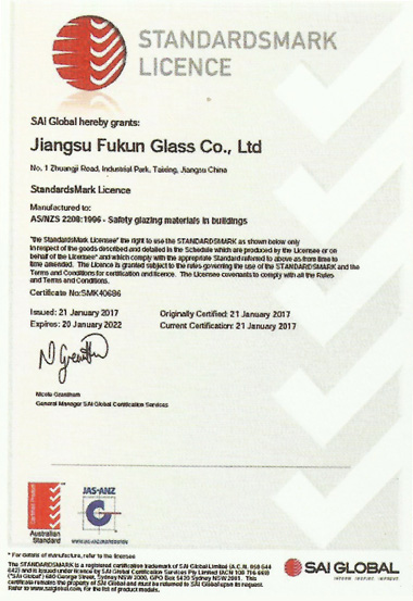 • 澳洲STA安全玻璃認證